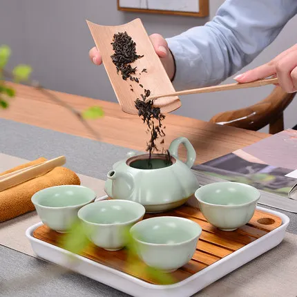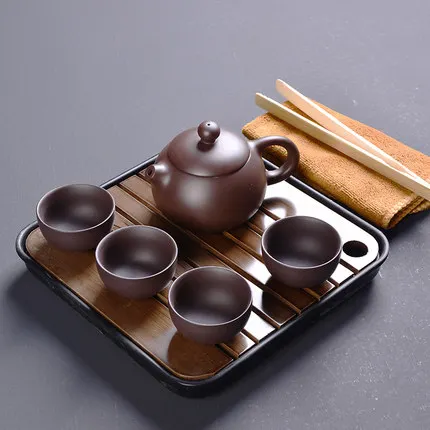 Chinese purple clay tea set family tea cup bowl ceramic kung fu tea set simple office solid wood sm