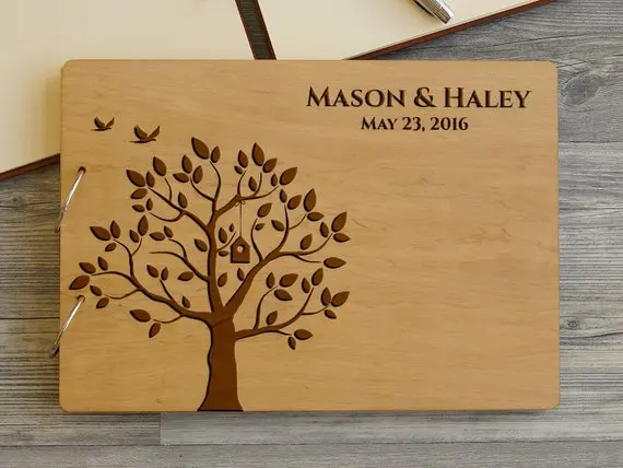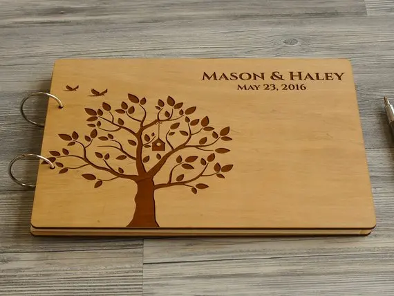 REVIEW TOP SELLER personalized names date wooden Rustic wedding guest album engraved family tree guestbooks Reception
